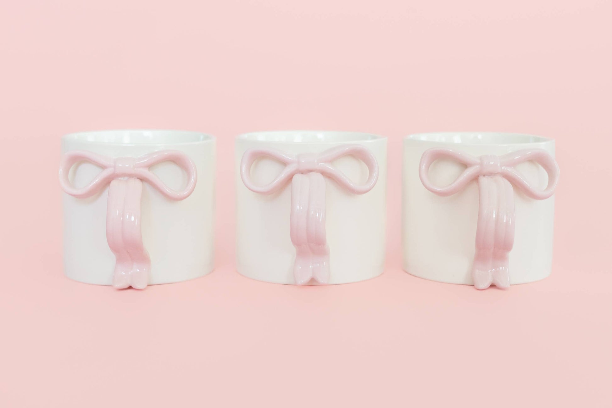 Blush Pink Bow Ceramic Coffee Mug with Ribbon Handle