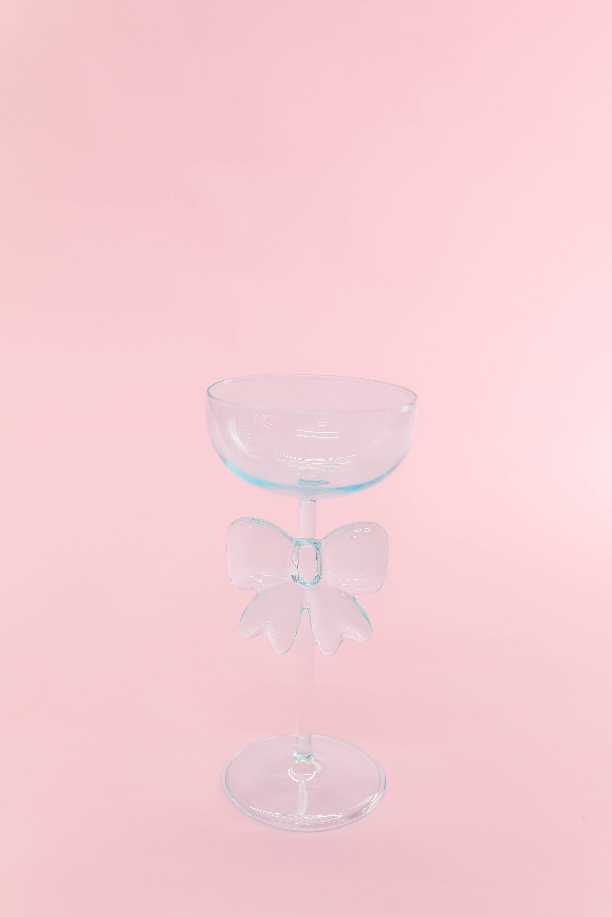 Bow & Bubbly - Pink Coupe Wine Glass : Blue