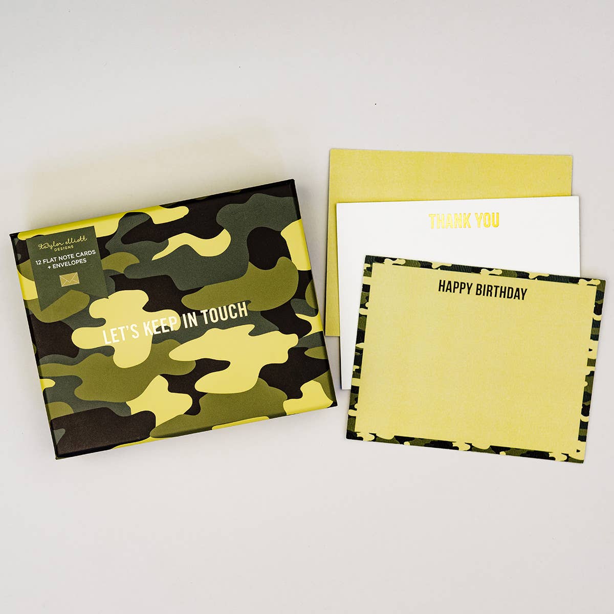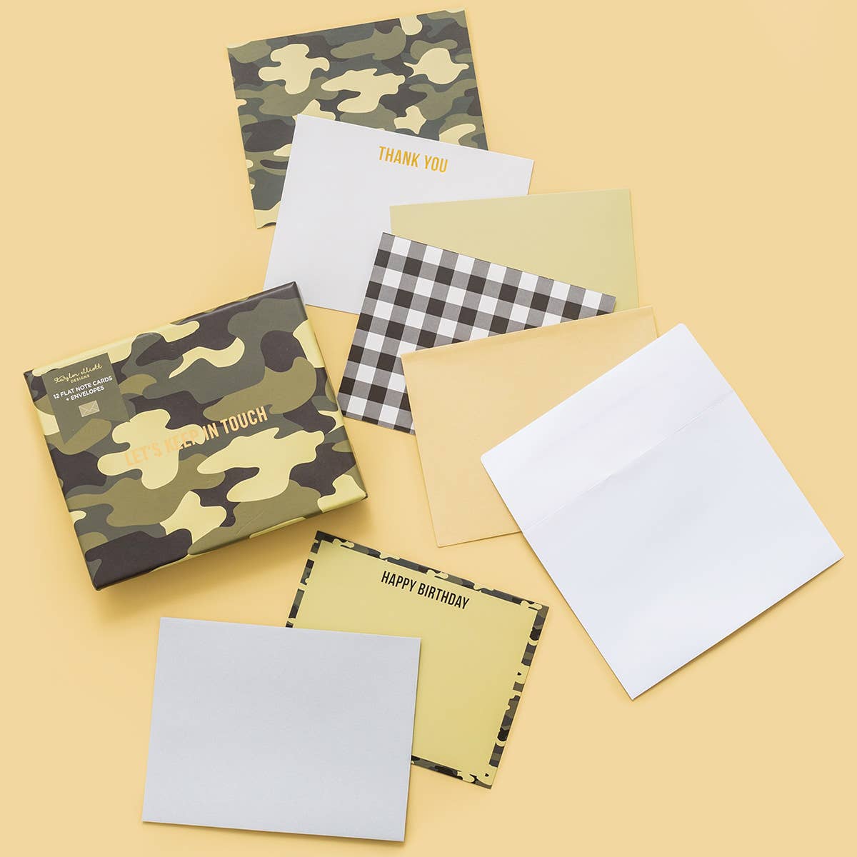 This bold, camouflage & gingham set of 12 note cards are perfect for any man or military member. Whether giving the set as a gift for Father's Day, a Birthday or graduation, or using the cards to send heartfelt messages, these cards will make a statement and show just how much someone is truly appreciated.