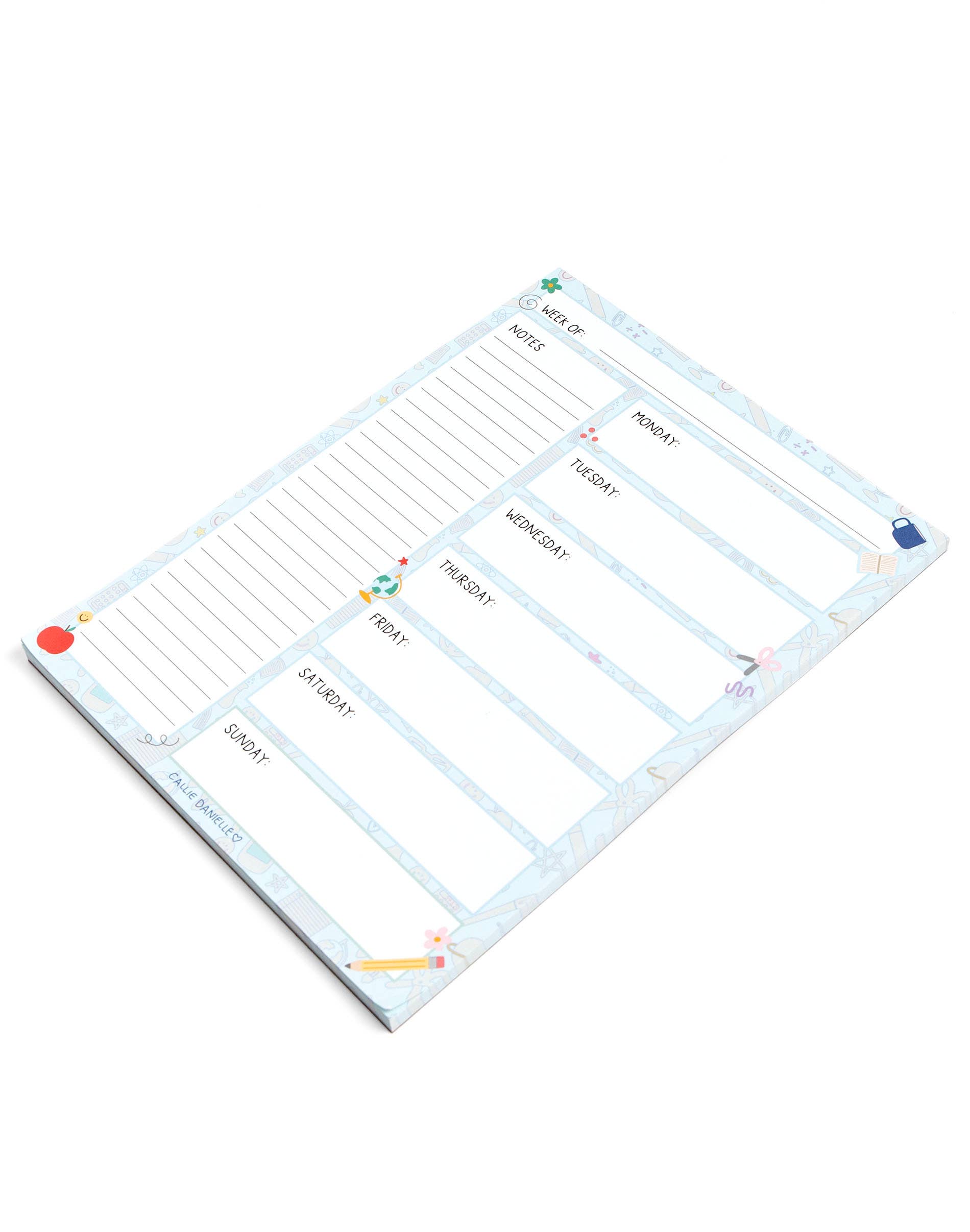 Ideal for teachers planning their week, students keeping track of assignments, or anyone who loves staying organized, this weekly calendar notepad is a fun and functional addition to your workspace. It also makes a thoughtful and practical gift for back-to-school season, helping educators and students alike start the year off right!