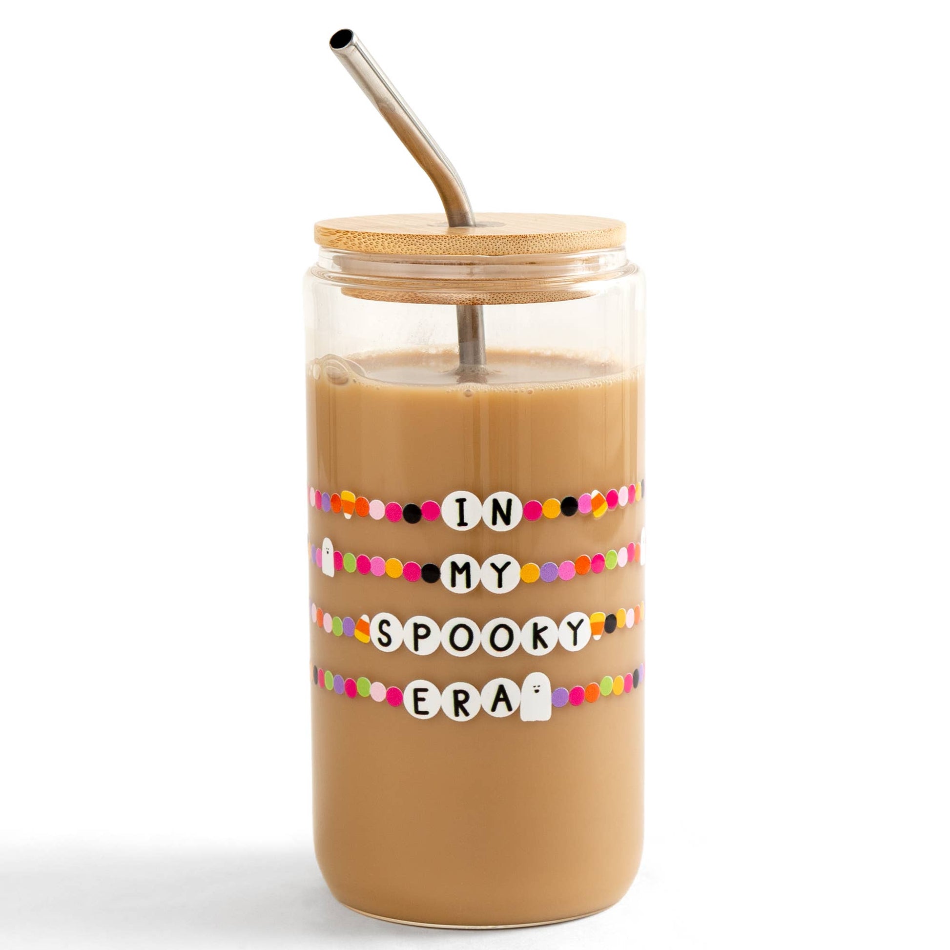 Sip in spooky style with the In My Spooky Era Halloween Glass Can! Perfect for Halloween lovers, Swifties, and fall enthusiasts, this trendy cup features a fun beaded friendship bracelet-inspired design with ghostly details. Whether you’re sipping iced coffee, matcha tea, or apple cider, it’s a festive way to embrace the season. Complete with a stainless steel straw, it makes a great gift for spooky season fans, October birthdays, or anyone who loves a touch of Halloween magic in their everyday routine!