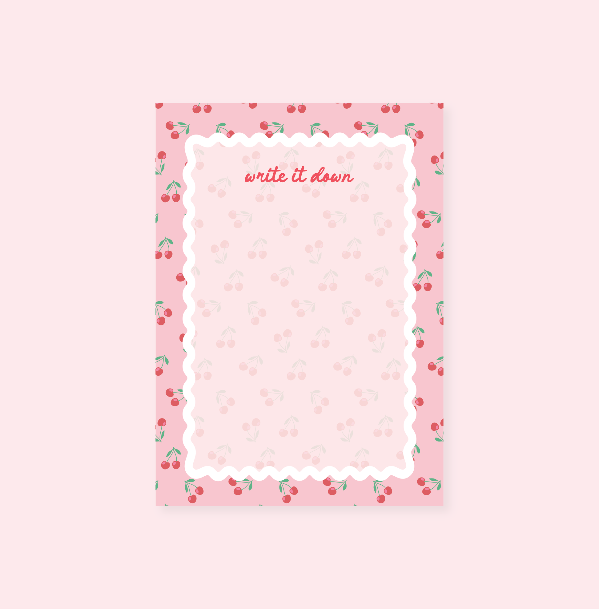 This Pink Cherry Write it Down Notepad is perfect for jotting down notes, to-do lists, or reminders, adding a touch of fun to your everyday tasks.