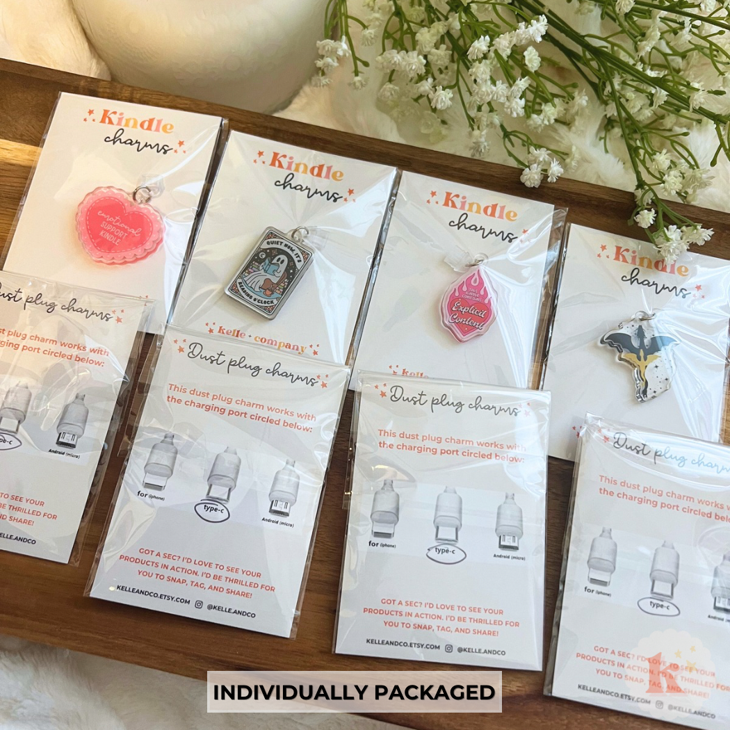 Add a touch of style to your Kindle with these cute dust plug charms. Designed to keep your e-reader’s port clean and free from debris, this accessory combines functionality with elegance.