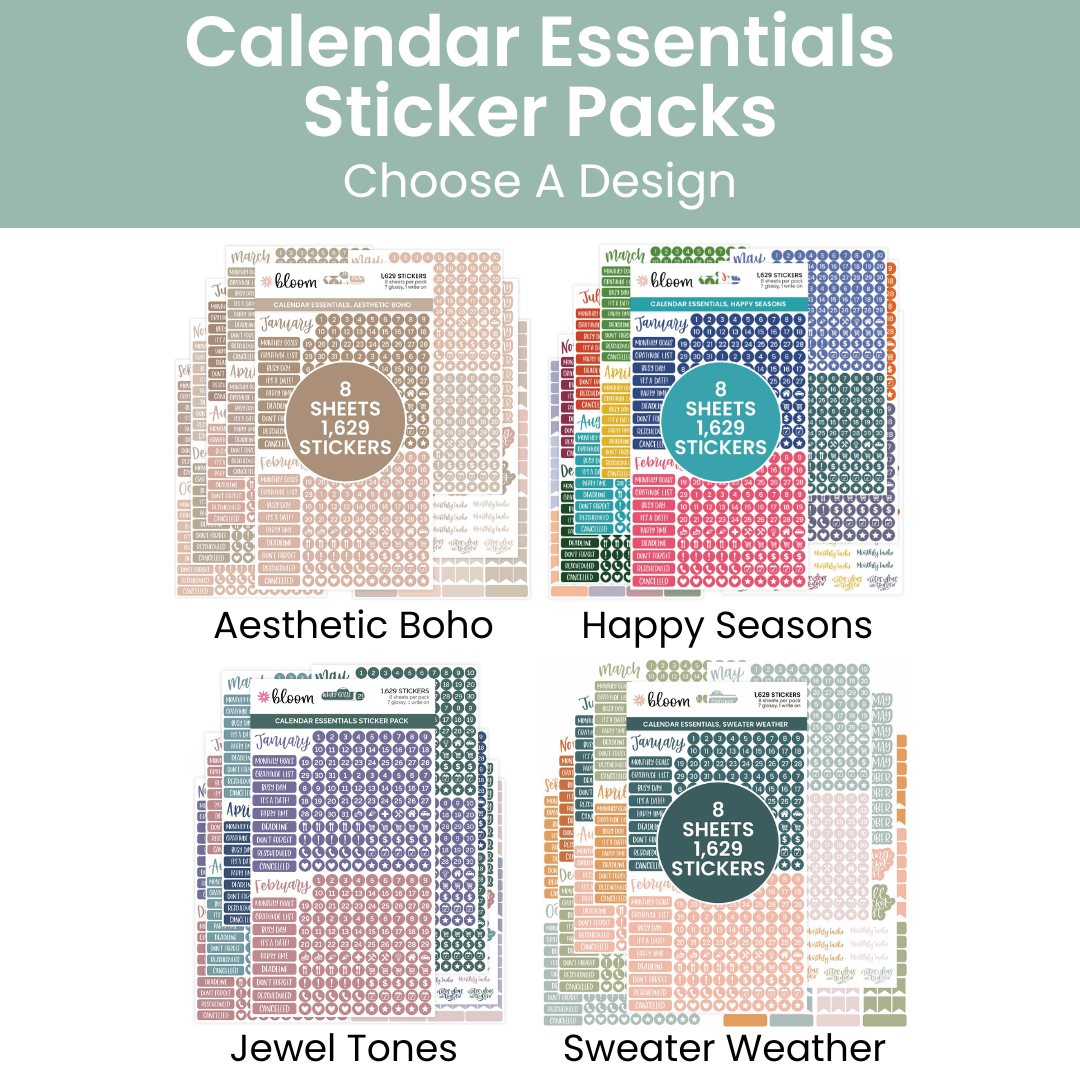 Our Calendar Essentials Sticker Pack is perfect for dating and/or customizing planners, notebooks, diaries, and more. Now available in three different color scheme options!