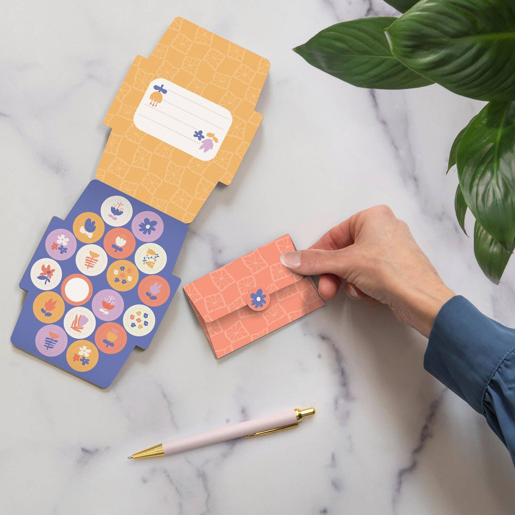 • Send memorable messages with this cute, colorful note paper that can be folded into tiny envelopes and sealed with matching stickers.