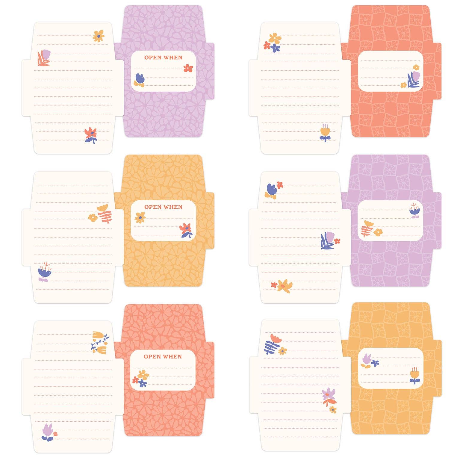 • Lined sheets feature cheerful designs or ""open when..."" prompts for perfectly timed birthday wishes, love notes, holiday greetings, and more.