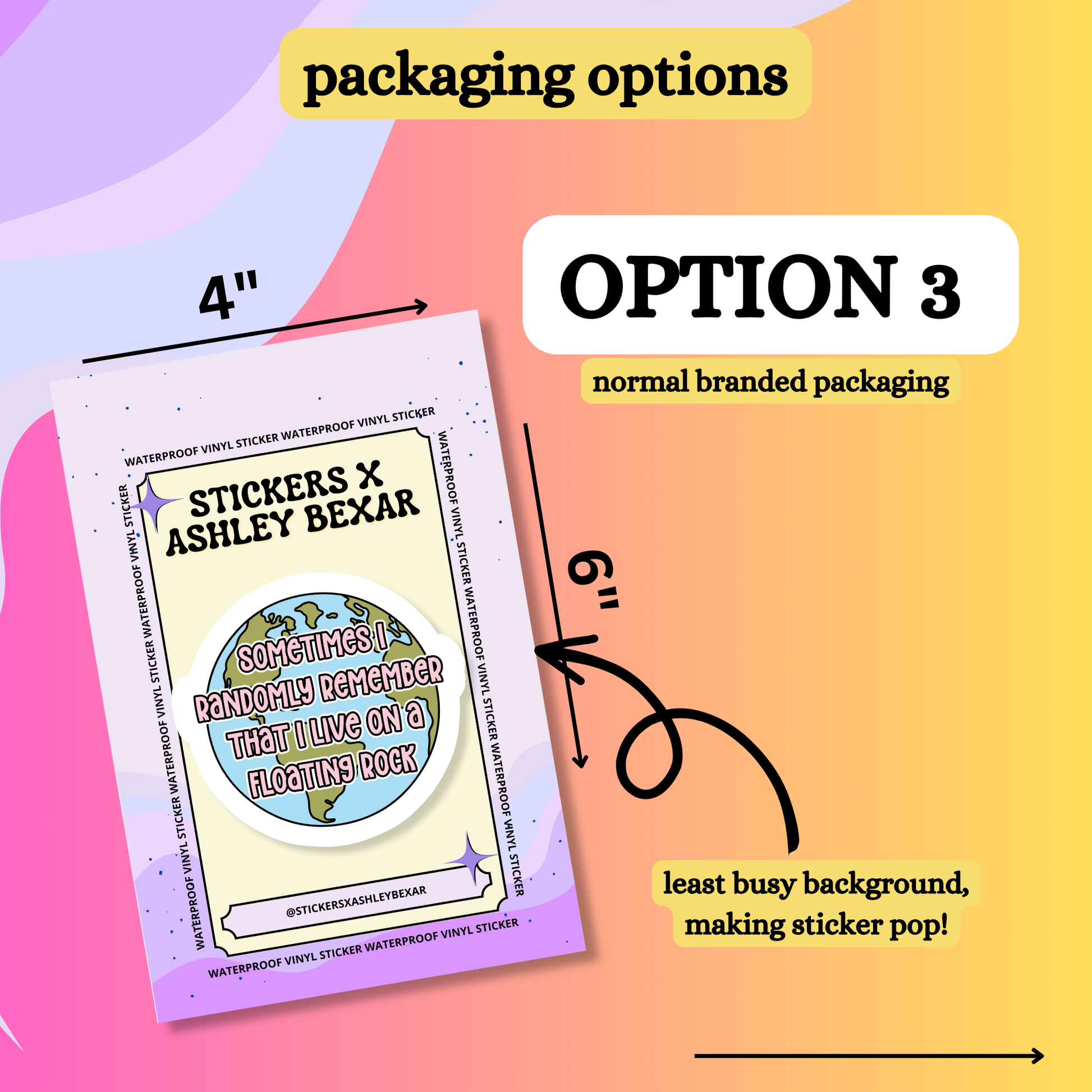 All stickers measure 3" in size, determined by height or width, whichever is larger.