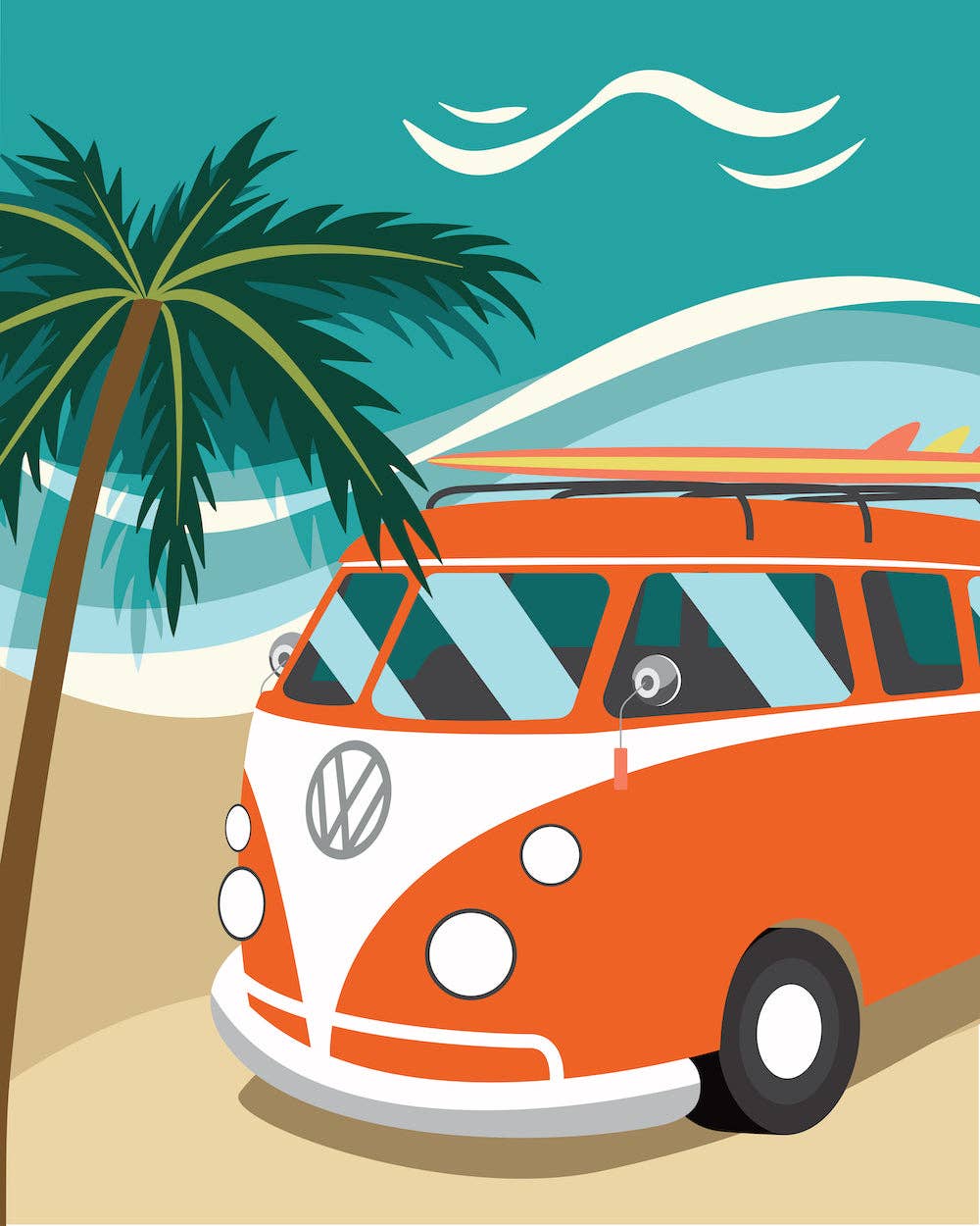 Hey, West Coasters! Your favorite mantra is now its very own paint-by-number kit. With a palm tree, sandy shores, dreamy ocean water, and a VW van to boot, nothing captures West Coast pride as thoroughly as our West Coast Best Coast kit.